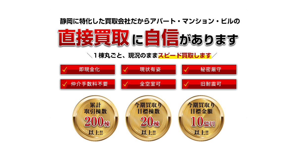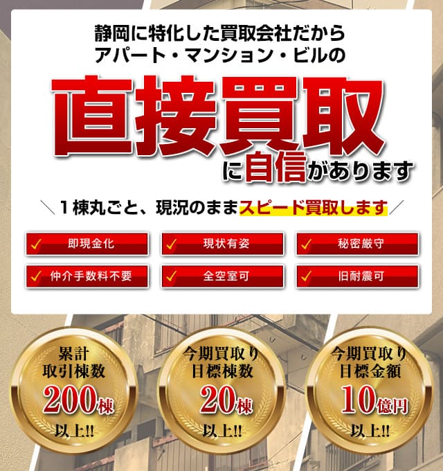 当社では静岡に特化した買取会社としてアパート・マンション・ビルの直接買取をしております。